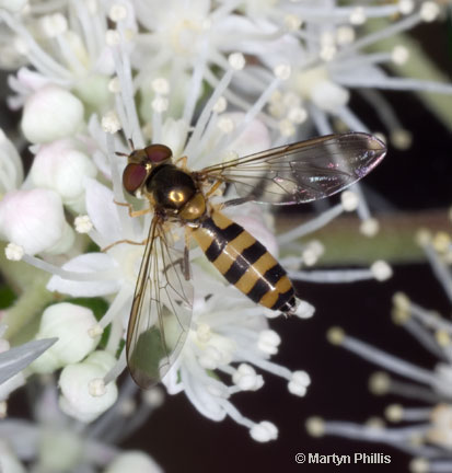 13th August onwards – Swarms of small hoverflies Meliscaeva cinctella Click for photo around Hydrangea flowers being preyed on by European Hornets